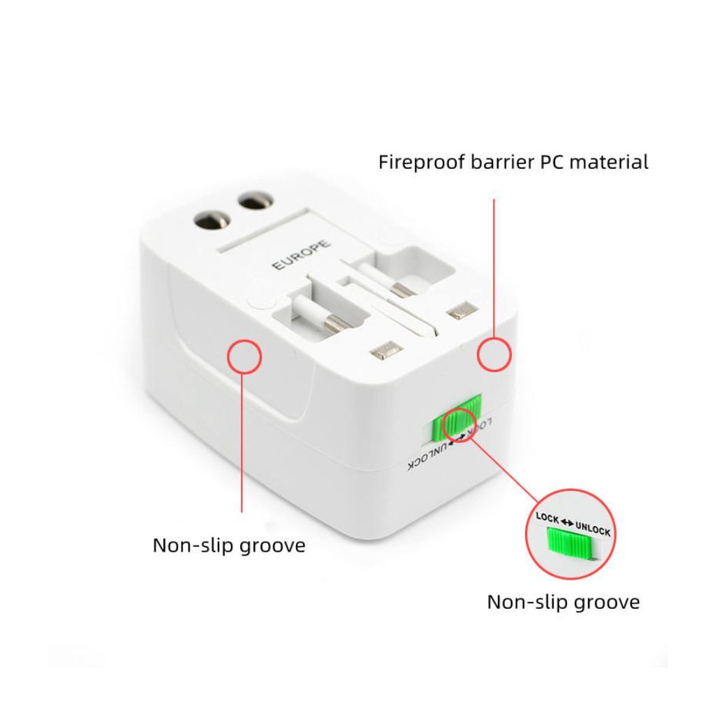Slide and lock the required plug type in place using the secure LOCK/UNLOCK switch. Built for convenience, this adapter helps you connect safely to different wall sockets around the world.