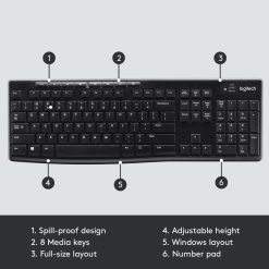 Equipped with eight shortcut keys for quick access to the internet, emails, and media controls, the K270 enhances productivity with convenience at your fingertips. The sturdy tilt legs let you adjust the keyboard angle for personalized comfort during long typing sessions.