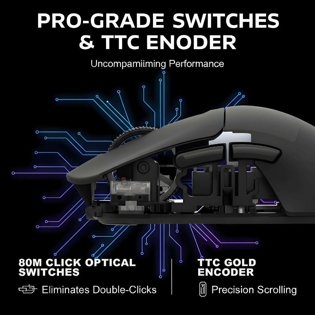 Powered by a flagship PixArt PAW3950 optical sensor, the Dagger delivers up to 30,000 DPI sensitivity for sharp, accurate trackingβideal for both fast swipes and precise aim adjustments.