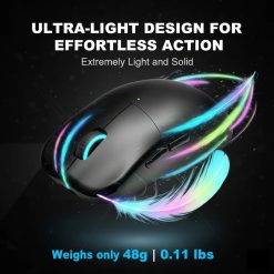 The 48g body reduces hand fatigue and allows faster flicks, smoother tracking, and better control during long gaming sessions.
