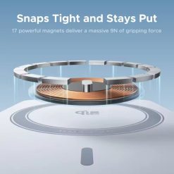 The Qi2-certified magnetic design delivers up to 25W wireless charging for iPhone 17/16 series, powering an iPhone 16 Pro Max to 50% in about 38 minutes. Seventeen N52 magnets provide a strong 9N magnetic hold to keep the power bank securely attached. (iPhone 17 Air supports up to 20W.)
