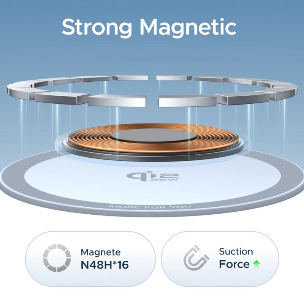 Charge your iPhone and Qi-enabled devices quickly with up to 25W wireless output. Designed for efficient daily use, it delivers stable and consistent power whenever you need it.