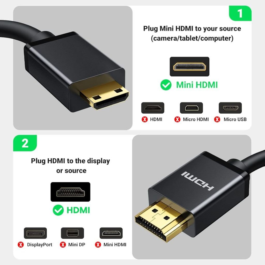 UGREEN Mini HDMI to HDMI 4K Male to Male Cable – 1.5M