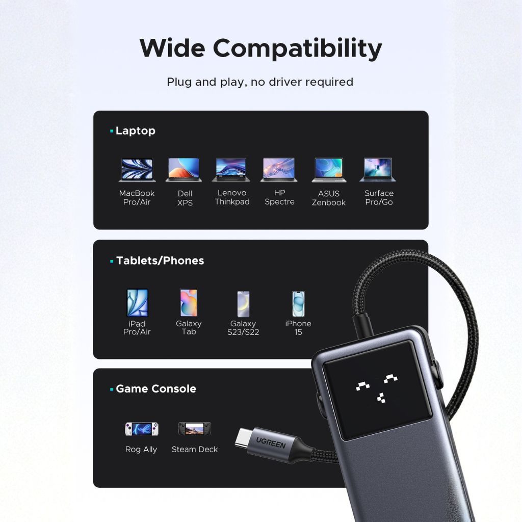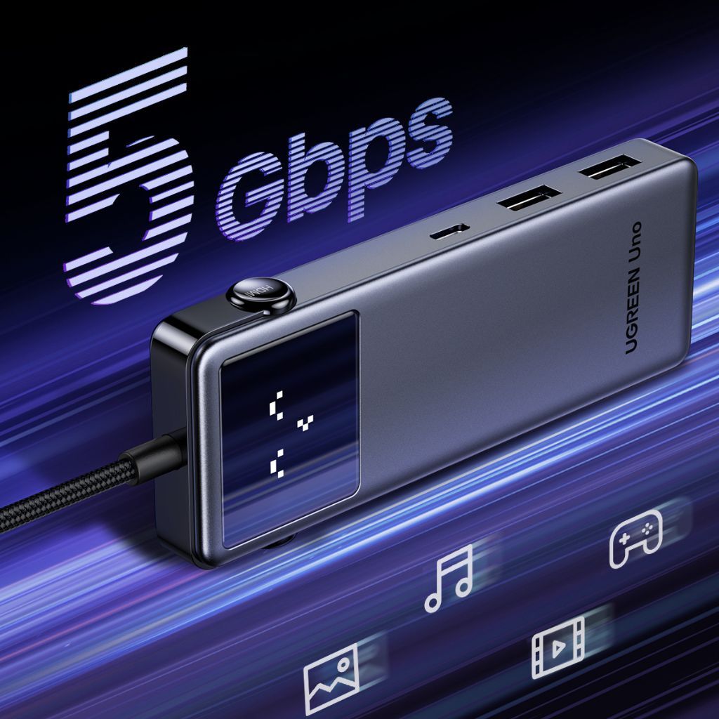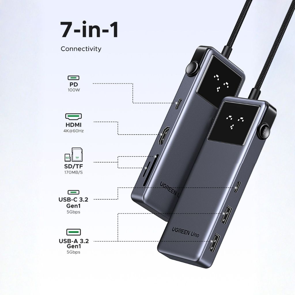 The UGREEN Uno 7-in-1 USB-C Hub combines a futuristic robot-inspired design with practical connectivity for modern laptops, tablets, and smartphones. Its clean, high-tech appearance fits naturally into contemporary workspaces while delivering reliable daily performance.