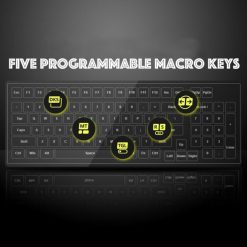 Five programmable macro keys allow personalized shortcuts, while IP68 waterproofing provides protection against spills. Dual-side RGB lighting adds a vibrant gaming atmosphere to your setup.